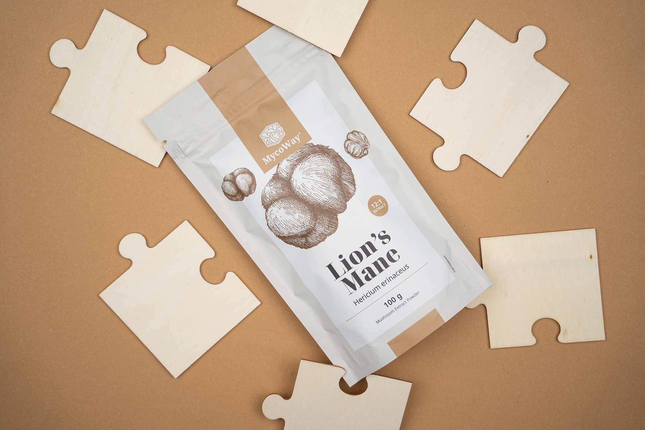 Съставки: екстракт от лъвска грива (Hericium erinaceus) 12:1 на прах.
