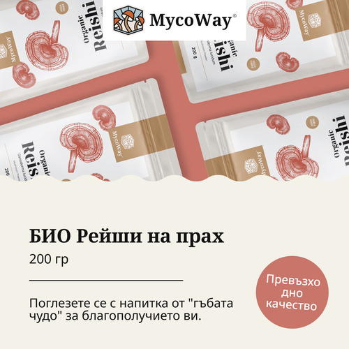 Съставки: 100 % рейши (Ganoderma lucidum) в прах. От сертифицирано екологично земеделие. Дистрибуцията се контролира от SI-EKO-002. Земеделие извън ЕС.