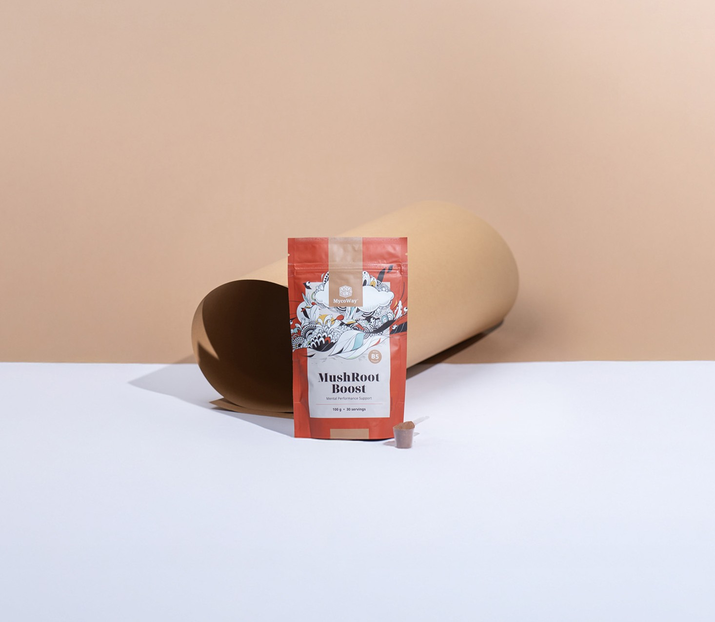 Съставки: какао на прах, мака (Lepidium meyenii; корен) на прах, сух екстракт от йерба мате (Ilex paraguariensis; малтодекстрин), сух екстракт от кордицепс (Cordyceps sinensis; мицел), сух екстракт от розов златовръх (Rhodiola rosea; корен; 1 % салидрозиди), сух екстракт от лъвска грива (Hericium erinaceus; лой), сух екстракт от рейши (Ganoderma lucidum; лой), сух екстракт от женшен (Panax ginseng; корен), сух екстракт от сиамски джинджифил (Alpinia galanga; корен), калциев d-пантотенат (витамин В5).