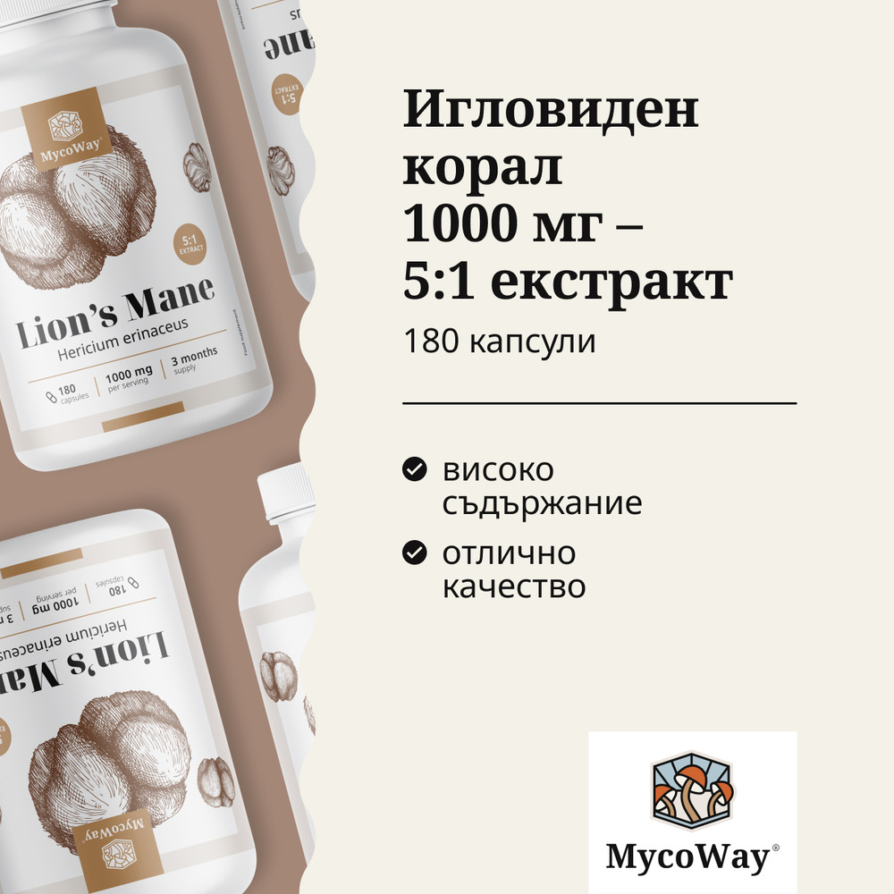 Игловиден корал (лъвска грива) 1000 мг – 5:1 екстракт