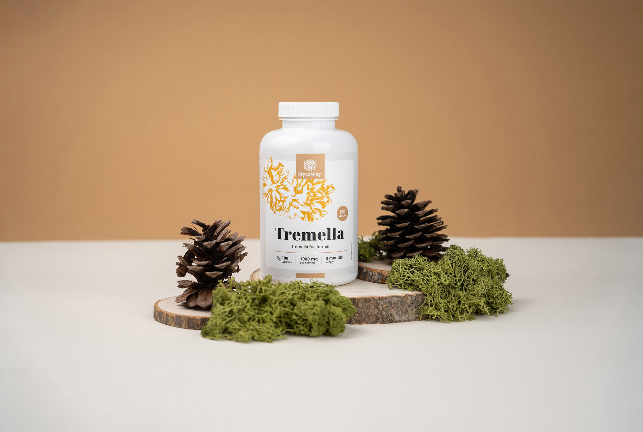 Съставки: прах от гъба тремела (Tremella fuciformis), микрокристална целулоза, силициев диоксид, растителна капсула (HPMC; хидроксипропилметилцелулоза).